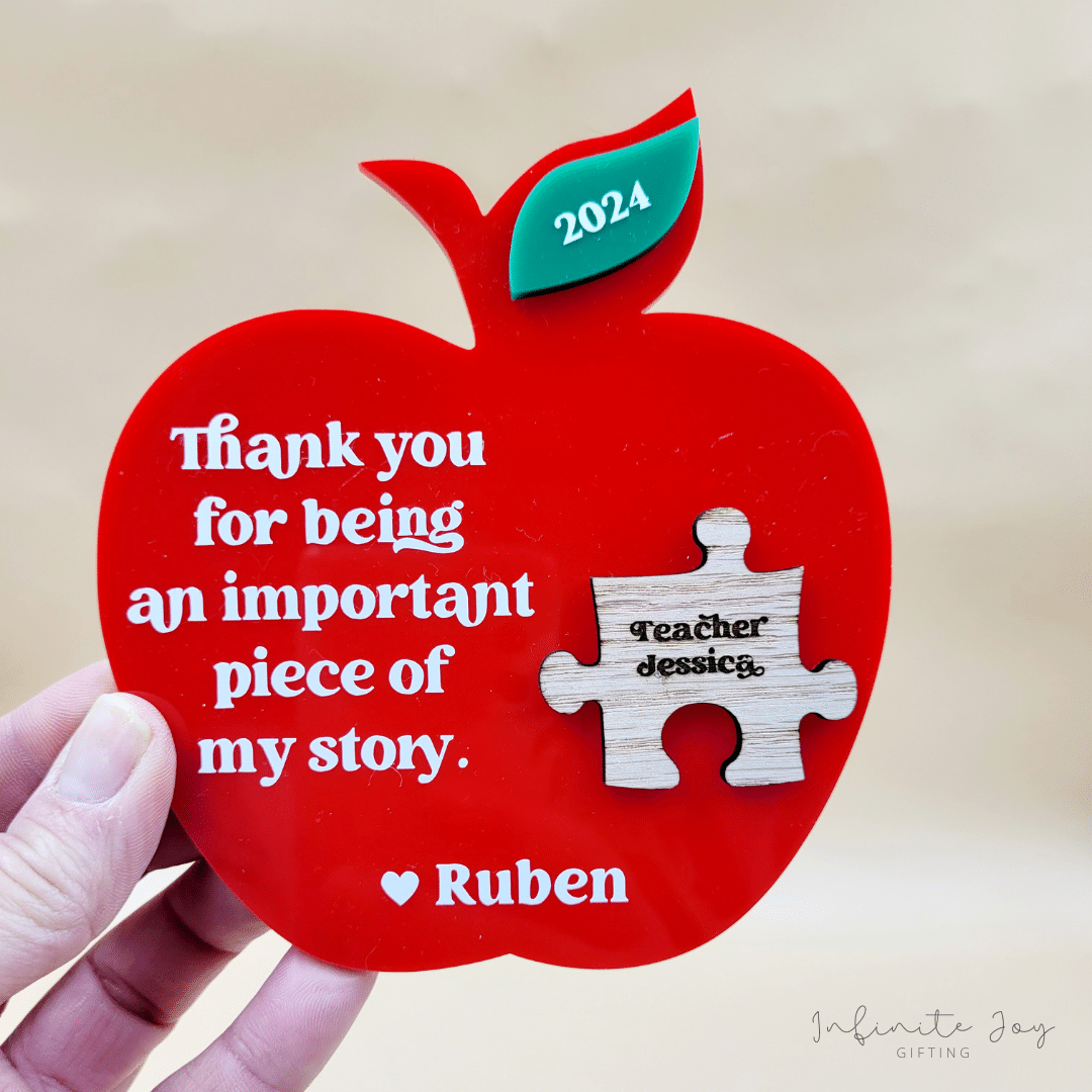 Cut from 3mm acrylic including beautiful vinyl personalisation, your teacher will be reminded on a daily basis what an impact they have had on your life!