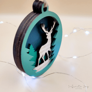 Celebrate the true meaning of the season with our elegant acrylic tree decoration, with vinyl customisation. This decoration captures the warmth and love of family gatherings during the holidays. Made from high-quality clear acrylic, this 90mm diametre decoration will shimmer beautifully against the lights of your tree and makes a beautiful gift for you and yours.