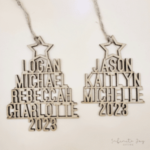 Add a personal touch to your holiday decorations with our elegant monogram tree decoration. Crafted from high-quality clear acrylic with chrome vinyl personalisation, this ornament is designed in a sleek, minimalist style featuring a single initial together with name. Perfect for families, couples or individuals, it adds a custom touch to any Christmas tree.