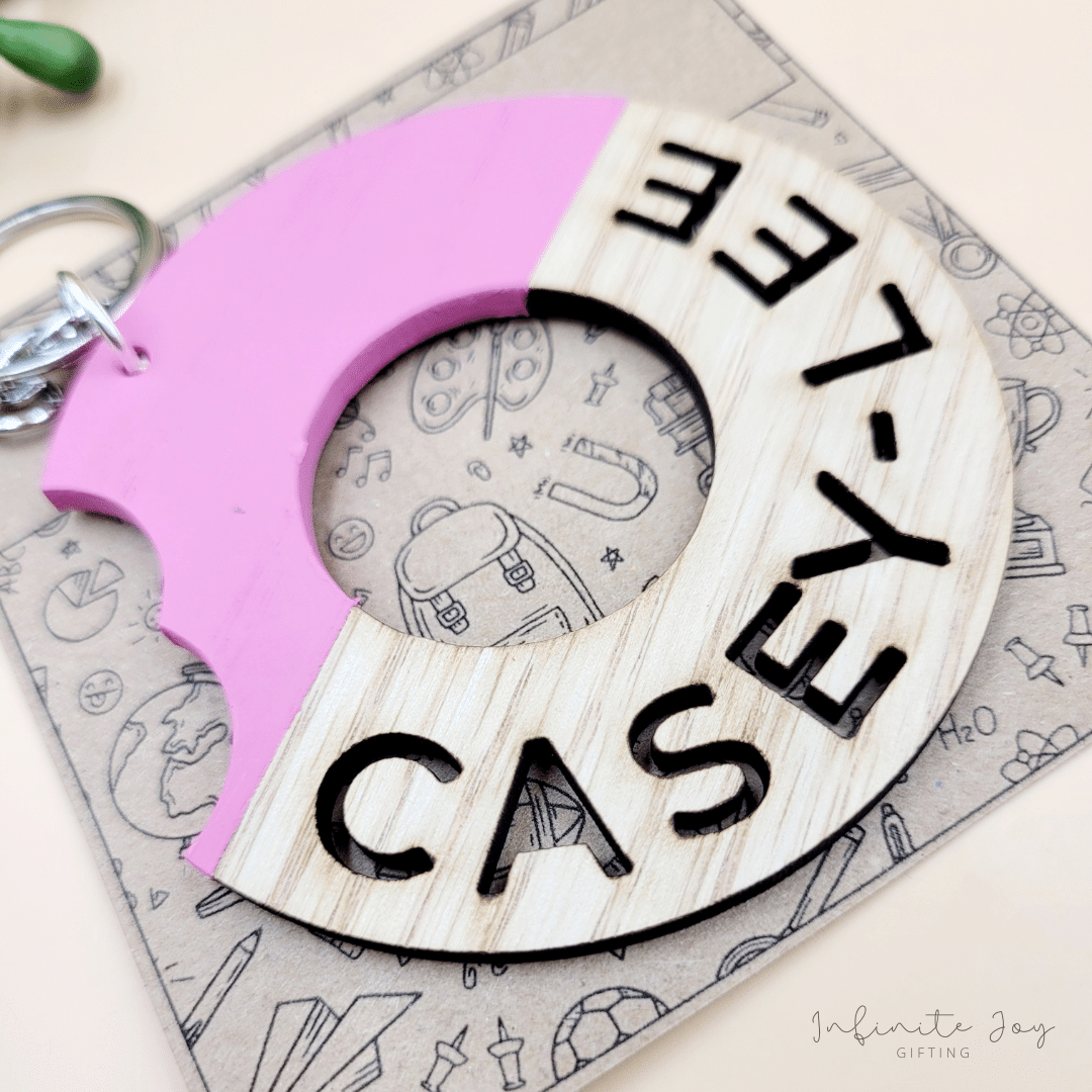 Laser cut from 3mm bamboo veneer and painted a colour of your choice. Size: 80mm diametre.