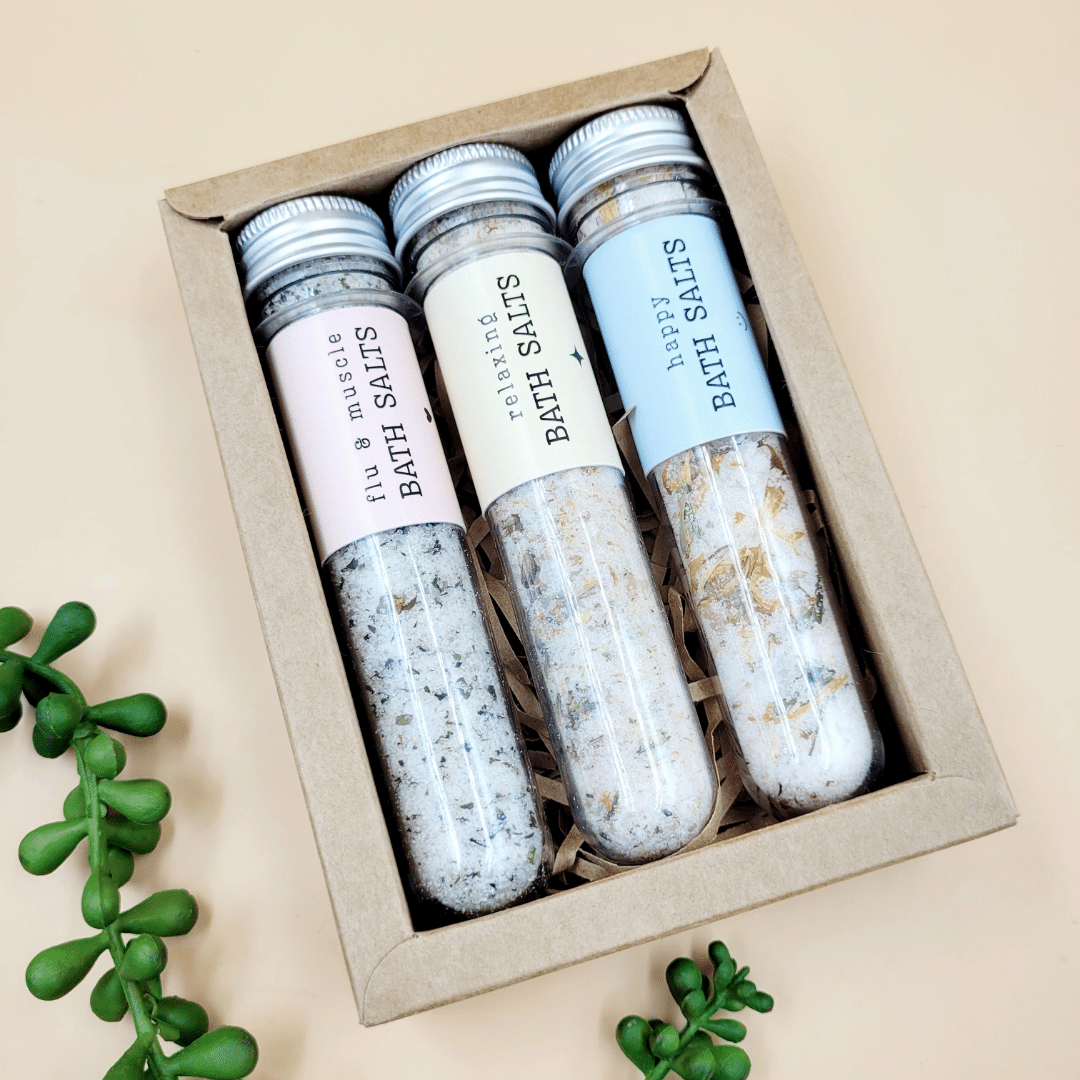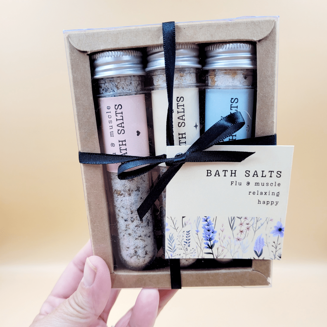 Elevate your bath ritual with our Bath Salts Trio, featuring three unique blends made with natural ingredients to relax the body, calm the mind, and lift the spirit. Whether you’re unwinding after a long day, easing sore muscles, or just craving a mood boost—there’s a soak for that.