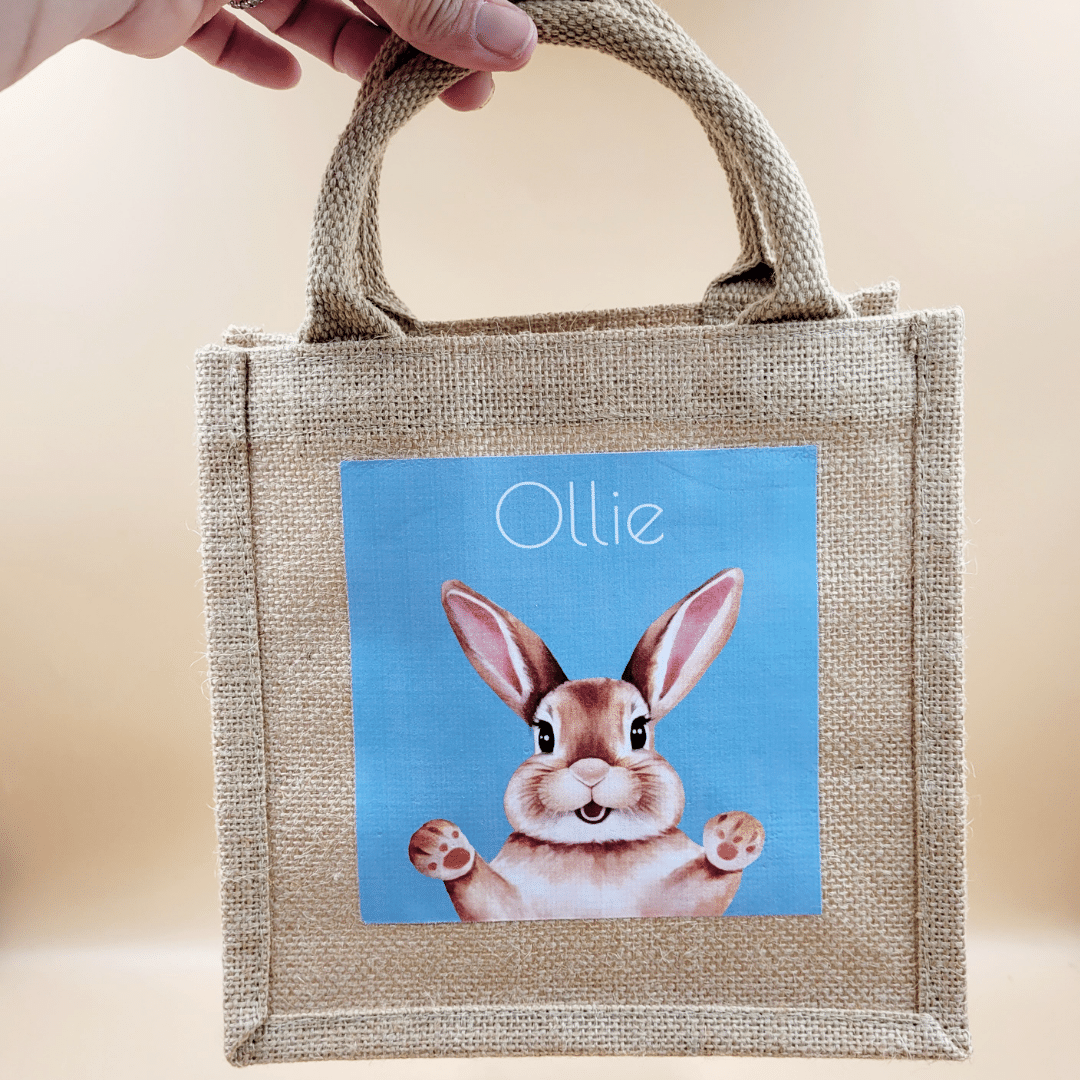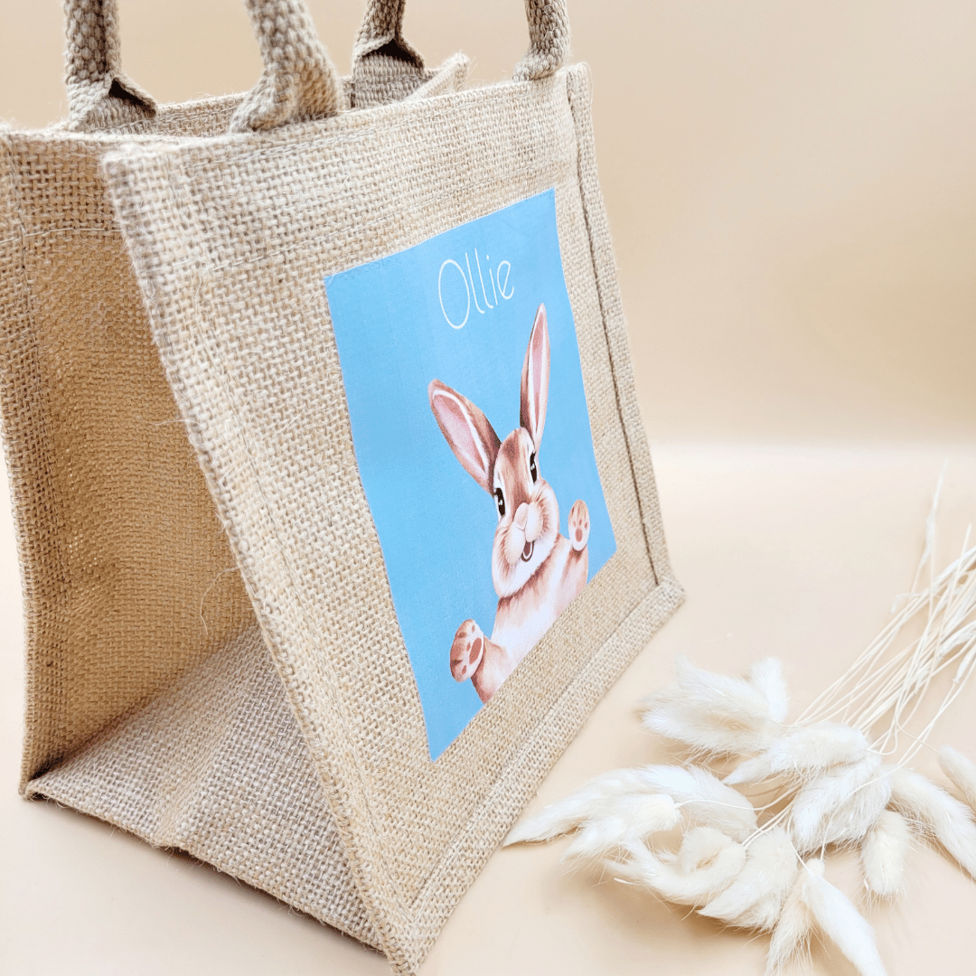 Get ready for an Easter egg hunt with this adorable jute Bunny Hunt Bag! Made from durable and eco-friendly jute, this charming bag features a cute personalised bunny design, perfect for collecting Easter eggs, treats, and treasures during the hunt. A great way to add a rustic touch to your Easter celebrations while being kind to the environment.