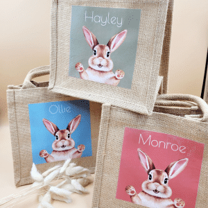 Get ready for an Easter egg hunt with this adorable jute Bunny Hunt Bag! Made from durable and eco-friendly jute, this charming bag features a cute personalised bunny design, perfect for collecting Easter eggs, treats, and treasures during the hunt. A great way to add a rustic touch to your Easter celebrations while being kind to the environment.