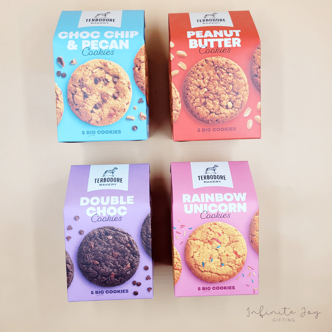 | Choose Cookie Type | Choc Chip & Pecan, Peanut Butter, Double Choc, Rainbow Unicorn |