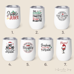 | Choose Tumbler Print | 1. Jungle Juice, 2. The Weather Outside, 3. I'm Dreaming of a White…, 4. Ho Ho Ho Pour the Merlot, 5.Naught List, 6.Dashing through Merlot, 7. Cheers! |