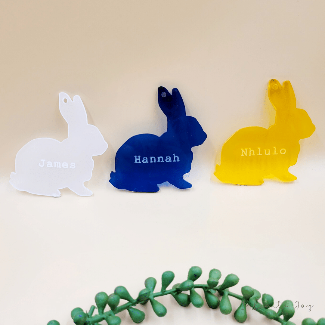 Laser cut from 3mm acrylic, in blue, frosted white or yellow and including personalised laser engraved name.
