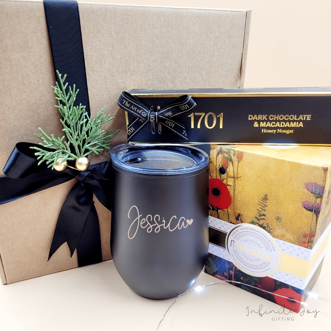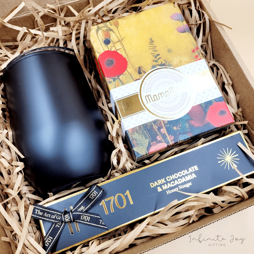 For the lover of all things sweet, this gift box will hit all the spots! Including luxury shortbread, decadent honey nougat and a double-walled tumbler, perfectly presented in a kraft gift box.