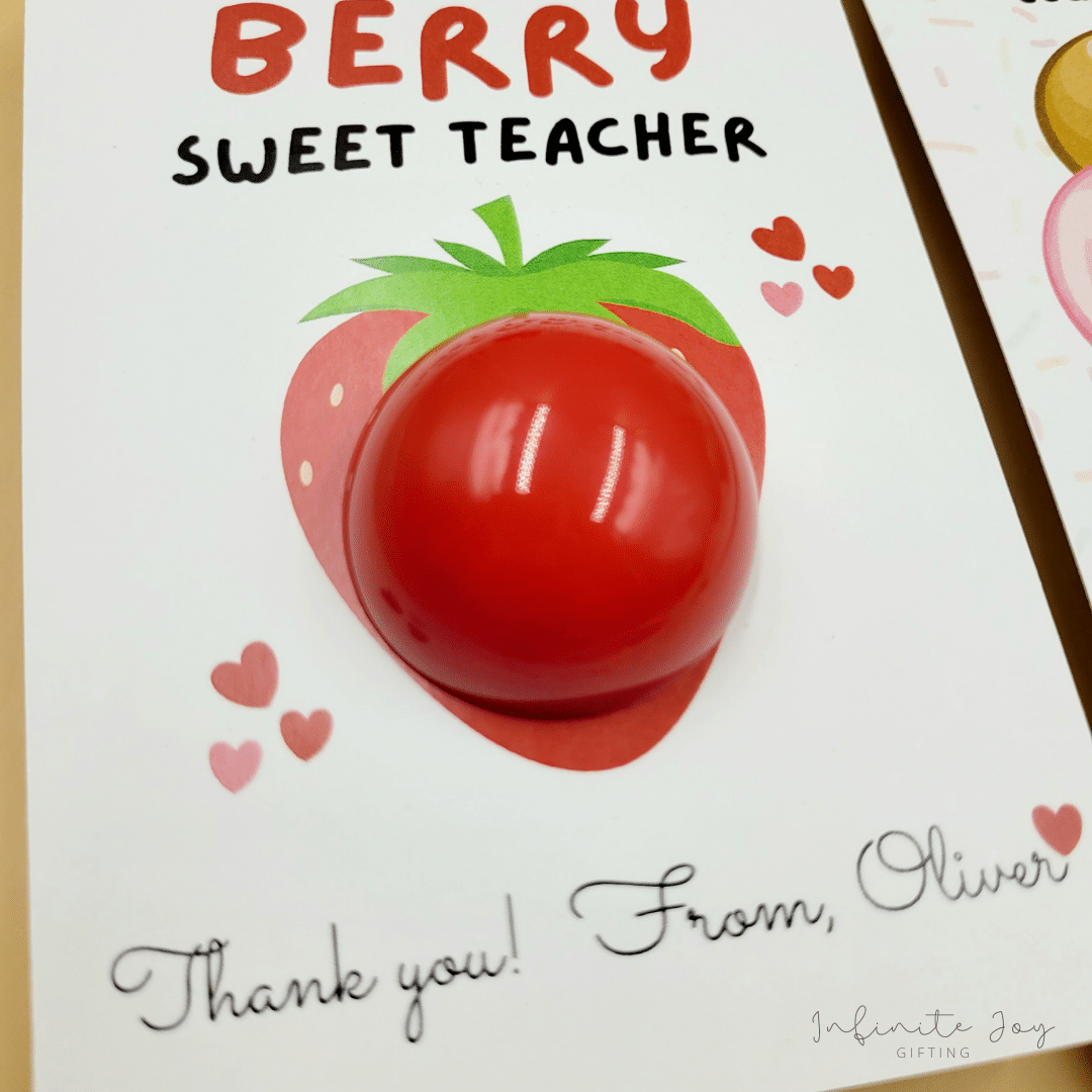 | Choose Card Type | Thanks a HOLE bunch, To a BERRY Sweet Teacher, You're The Balm, Thank you for being the SWEETEST teacher, Thank you for helping me BLOOM, Thank you for helping me SOAR…, Thanks for BEE-ing…, Best Teacher Ever |