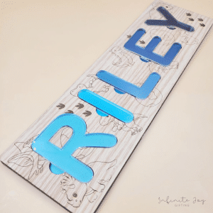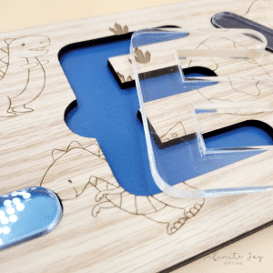 Make learning fun with our personalised wooden and acrylic name puzzle. This beautifully crafted puzzle is the perfect way to teach little ones to spell their name, while developing motor skills and letter recognition. Each puzzle is custom-made from premium veneer wood and clear acrylic letters, creating a unique keepsake that will be treasured for years.