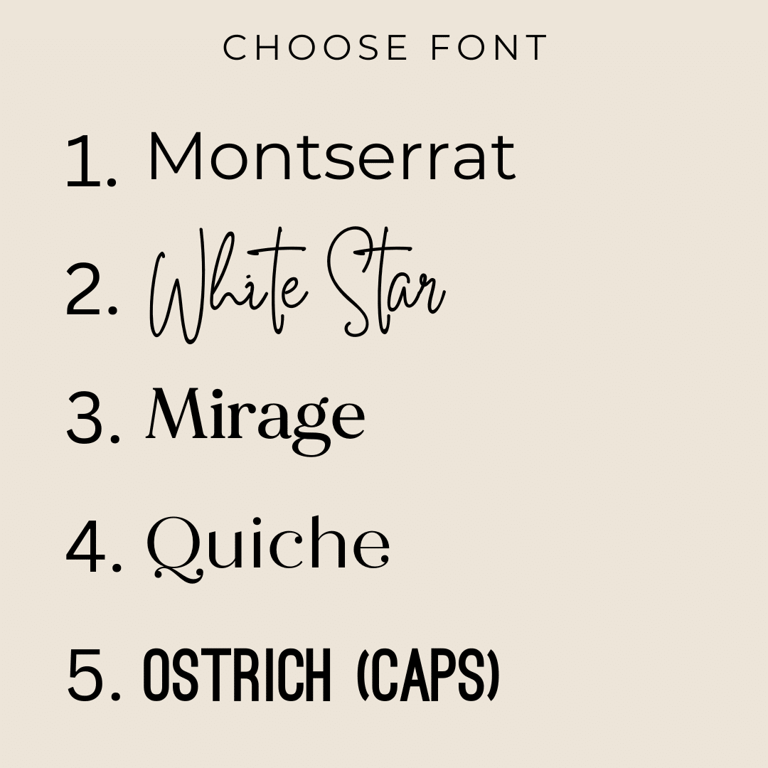 Select a font of choice or ask us to customise the bottle for you by adding a note in the comments field at checkout.