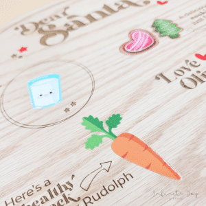 Leave out with treats for Santa and his helpers on Christmas Eve and keep the magic of Christmas alive! Our Santa Board is a generout 250mm diametre in size, laser cut and engraved on veneer wood and including UV print plus personalisation with the name of your child or children.