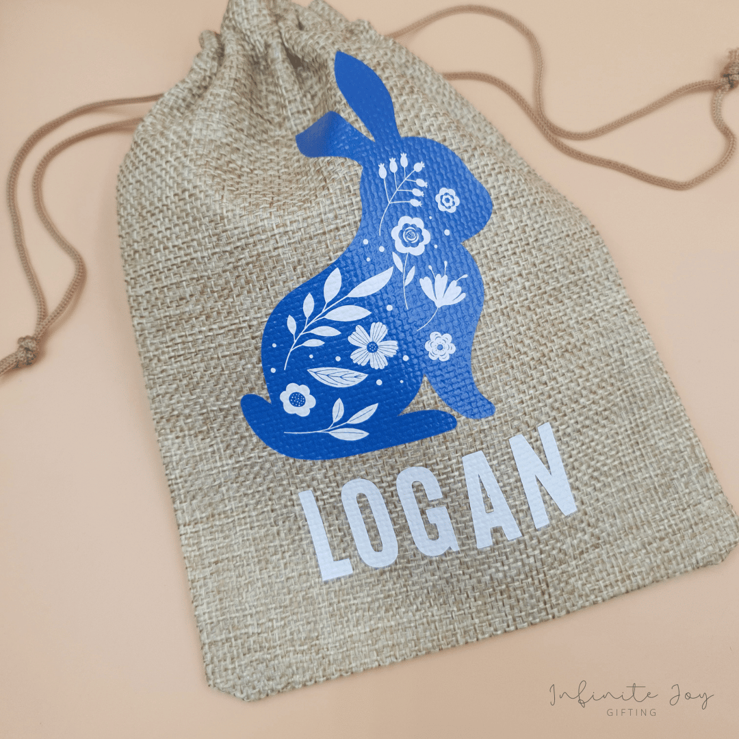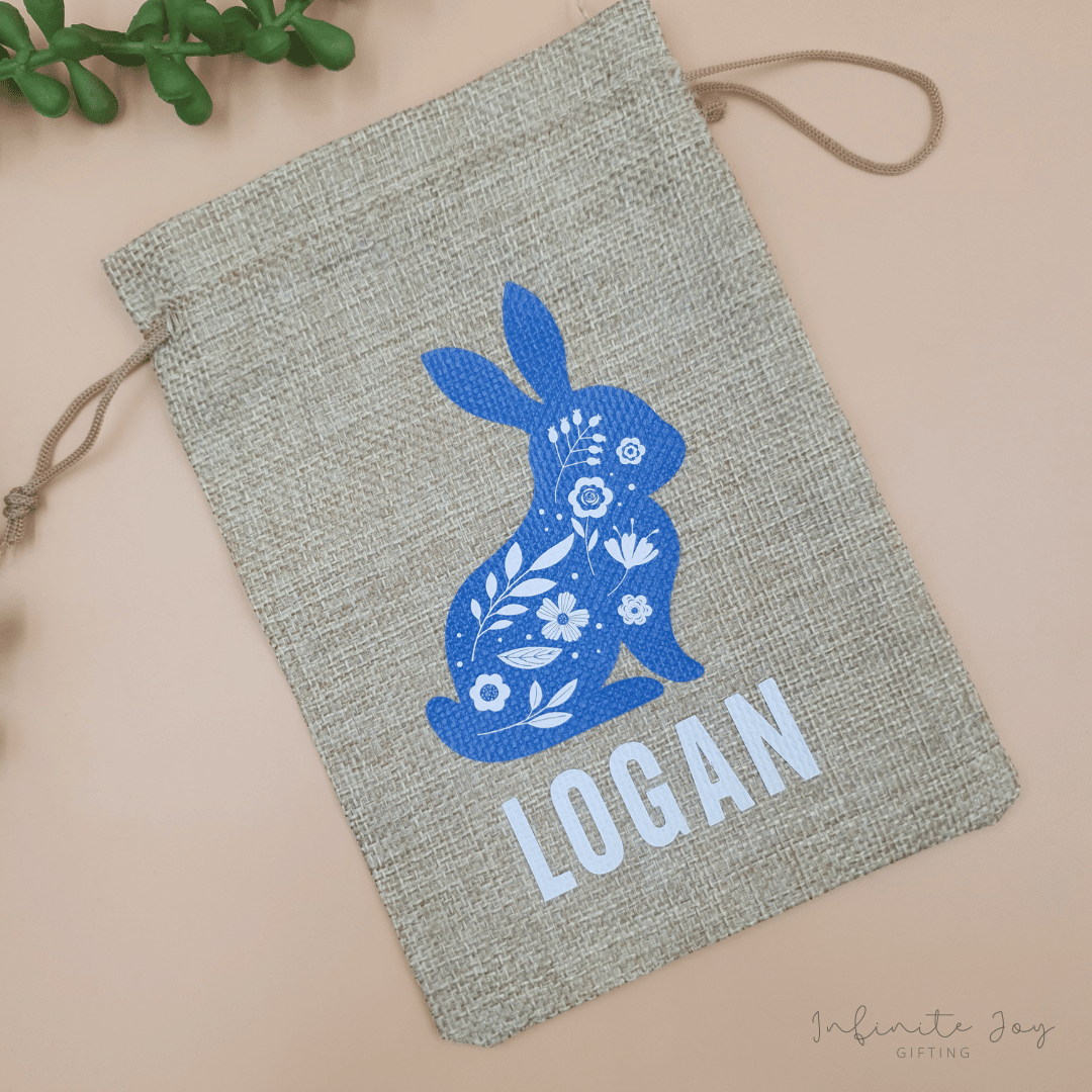 Hessian treat bag, personalised with name, supplied with our without Easter treats.