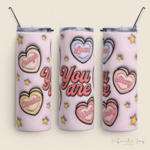 20oz (600ml) skinny skinny metal tumbler with full wrap around colour print. Approx. 20.3cm with circumference of 23cm. Double Walled, stainless steel tumbler, double walled and vacuum insulated, which keeps your favourite beverage hot or cold for hours. Comes with a plastic straw and sealable BPA free lid.