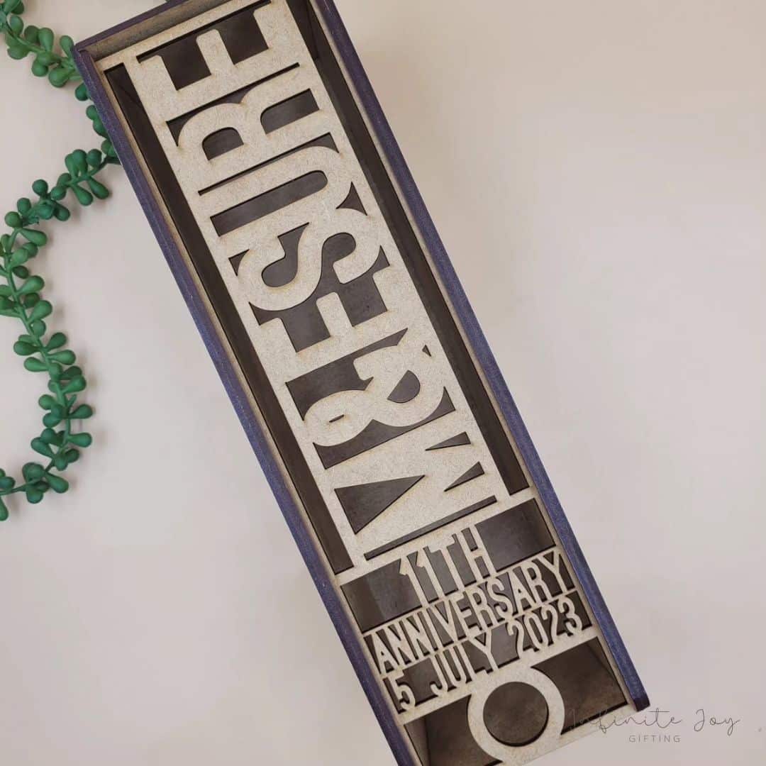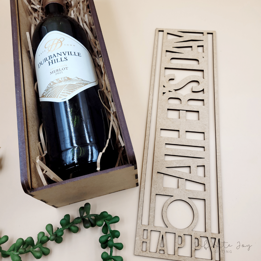 Custom Wooden wine box, cut out of 3mm MDF wood and designed to include any special message.