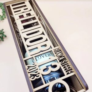 Custom Wooden wine box, cut out of 3mm MDF wood and designed to include any special message.